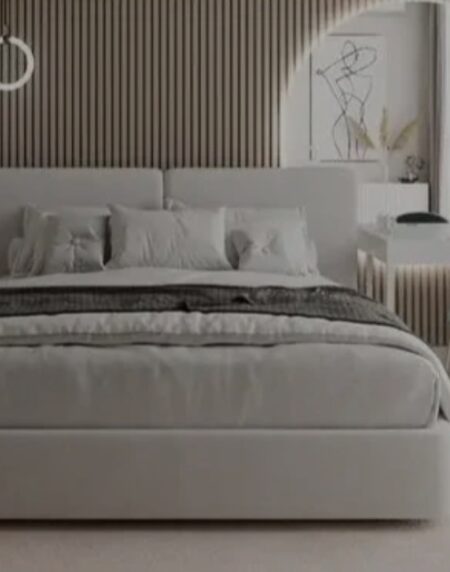 This bed is likely a stylish and high-quality, minimalistic bed design that combines both aesthetic appeal and functionality. Its designed to enhance the bedroom’s look and feel while providing comfort.