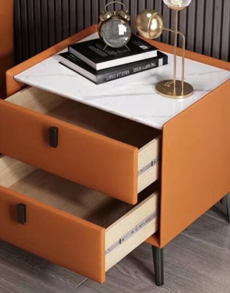 This Pedestal is a simple yet elegant modern side table available in a white or black glossy top. It has metallic chrome gold legs and handles, which beautify the unit, making it a must-have in your home or office. The top coating of the wood is a glossy veneer. The